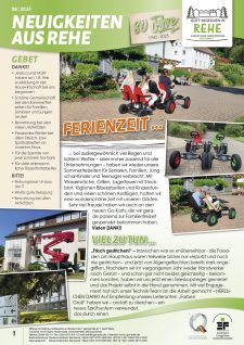 Unter Newsletter finden Sie die aktuellen Newsletter zum Downloaden. Sie möchten gerne regelmäßig „Neuigkeiten aus Rehe“ per Mail oder Post erhalten?